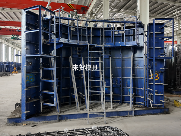 紧固端模板的控制螺栓,关闭两侧的端模板;紧固侧模板的2条控制螺栓,关闭两侧侧模板;紧固侧模板的两端侧板锁紧螺栓和边角锁紧螺栓。以上四步锁紧螺栓必须用力矩扳手控制锁紧力,锁紧螺栓的步骤不可颠倒。锁紧螺栓时要目测模具的结合面闭合是否严密,刻在端模板和侧模板表面的标记线要对齐。